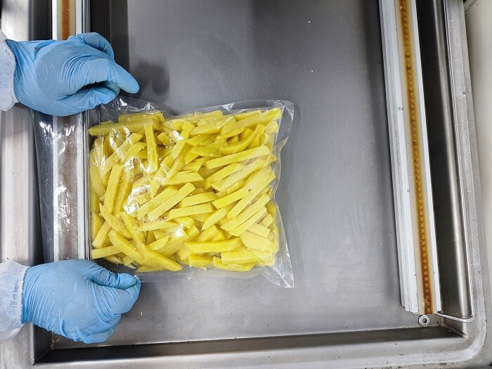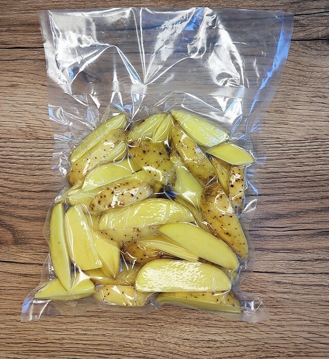 (Мытый нарезанный дольками картофель в вакуумной упаковке)